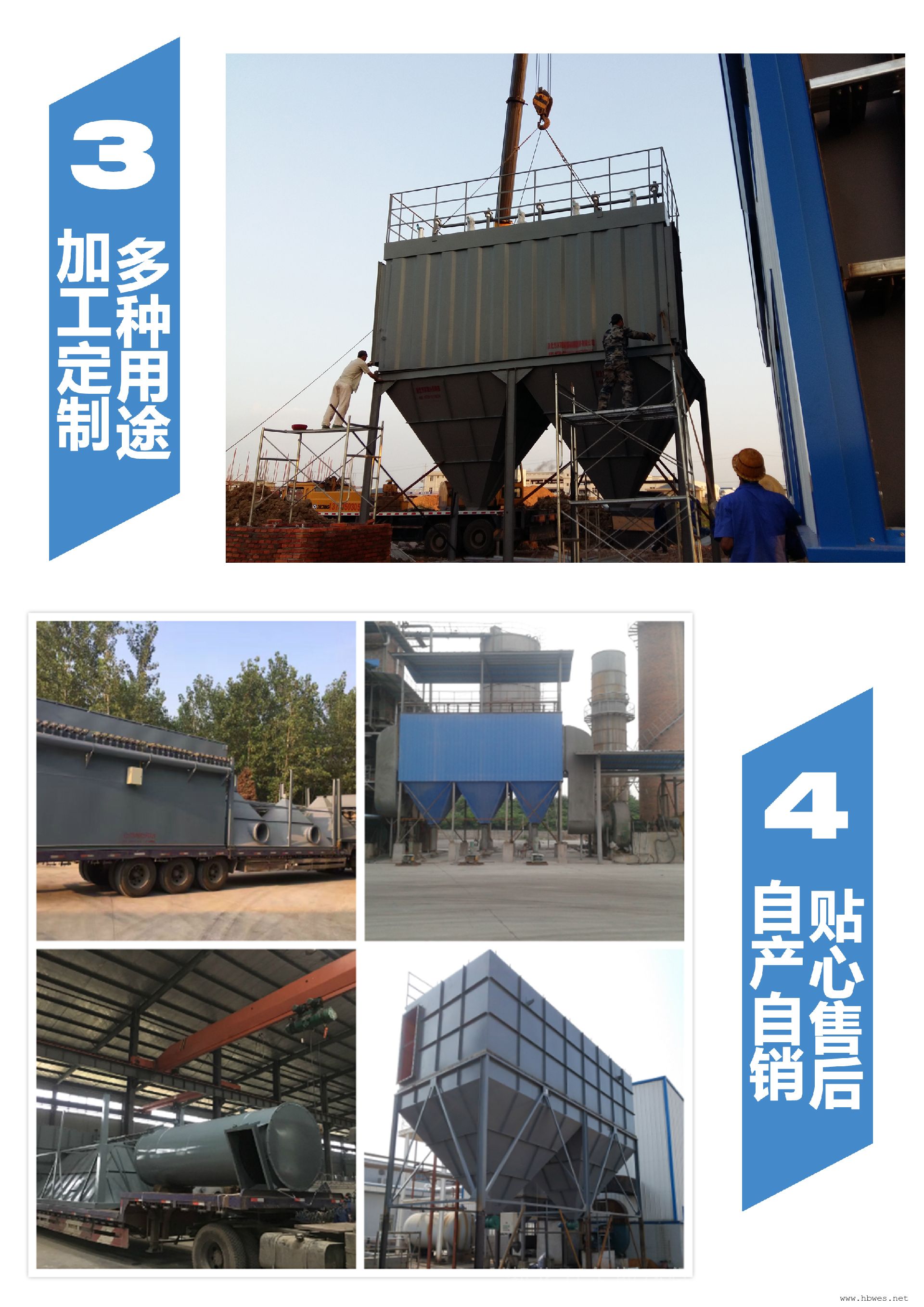 布袋除尘器。我公司生产的布袋除尘器适用锅炉、窑炉、导热油炉等各种工况的除尘。确保环保验收一次通过。